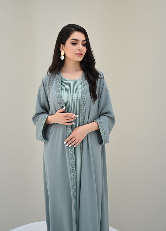 Green satin pleated inner